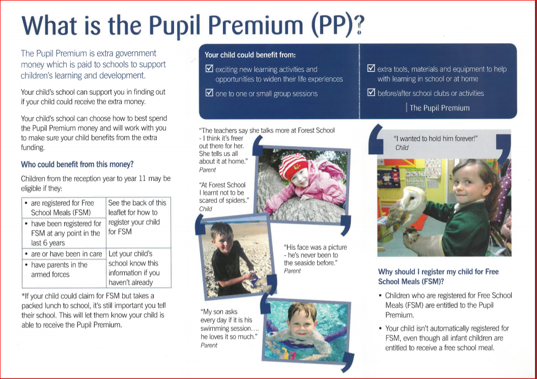 Pupil premium was introduced in April 2011 and is paid to schools as a grant. It is allocated to schools for each child who;